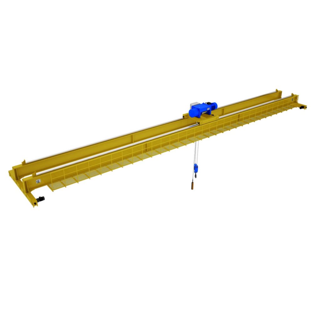 Опорный двухбалочный электрический кран-балка состоит из двух несущих балок и ряда вспомогательных механизмов. Грузоподъемный механизм размещается на специальной тележке, расположенной между двумя опорными балками. Кран опирается ходовыми колесами на пути, закрепленные на подкрановой балке. Подкрановая балка обычно стоит на колоннах и опирается на выступы верхней части колонн цеха.